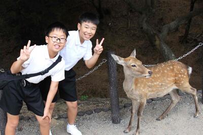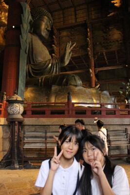 次に奈良へ移動し、東大寺で大仏を見たり、鹿に餌をやったりしました。大仏の大きさにびっくりしたり、鹿から逃げ回ったり!?と楽しい時間を過ごしました。