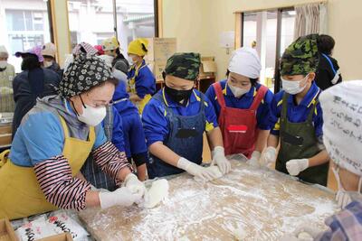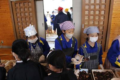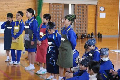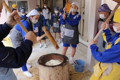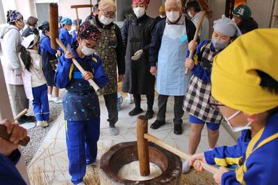 12月10日(水)に多くのボランティアの方にお越しいただき、子ども達念願のお餅つきを行いました。5年生は、これまで籾まき、田植え、稲刈り、脱穀、お米の販売、お飾り作りの活動を地域の皆さんに支えていただきながら行ってきました。そして、いよいよ子ども達が一番楽しみにしていたお餅つきの日を迎えました。杵と臼でつき、小さく切って丸め、できたてのお餅を砂糖醤油、きなこ、あんこで味付けをして食べました。味は・・もちろん最高です!他の学年の友達にもおすそ分けをして楽しい時間があっという間に過ぎました。当日、寒い中ボランティアに来ていただいた米作り班の皆様、各老人クラブの皆様、本当にお世話になり、ありがとうございました。