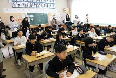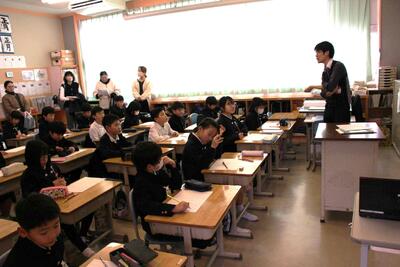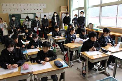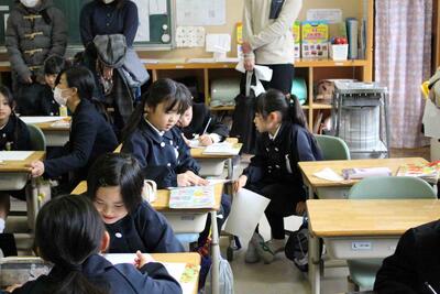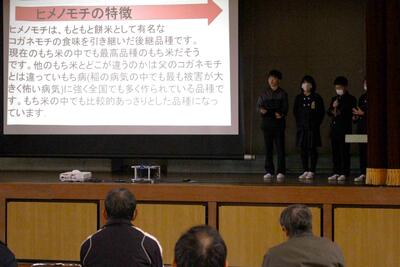 1月27日(火)に参観日がありました。多くの学年は国語と算数でしたが、5年生は1年間を通して総合的な学習で取り組んできた「米作り」の発表会を行いました。この発表会では米作りでお世話になったボランティアの皆さんも招待して、学んだことを発表したり、クイズを出したりして楽しく授業を行うことができました。また、お餅の試食も準備し、お世話になったボランティの皆さんや保護者の方々に振る舞うことができました。終始、楽しい雰囲気の中で発表会を実施することができました。他学年の授業の様子と合わせて紹介します。