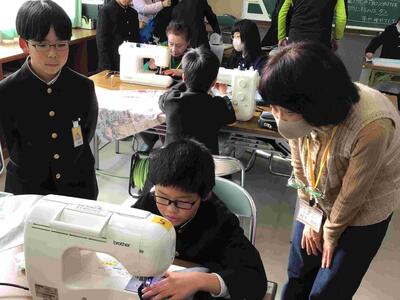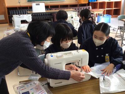ミシンでエプロン作りに挑戦! 投稿: 校長 (10:57) 5年生の家庭科でエプロン作りを行いました。そこへ強力な助っ人であるボランティアの皆様にお越しいただき、一緒に楽しく裁縫を行うことができました。今回が2回目のミシン学習となりましたが、まだまだミシンに不慣れな5年生に多くのことを教えていただきました。本当にありがとうございました。 エプロンの完成が楽しみですね。お忙しい中、参加いただいたボランティアの皆様、本当にありがとうございました。 Tweet -