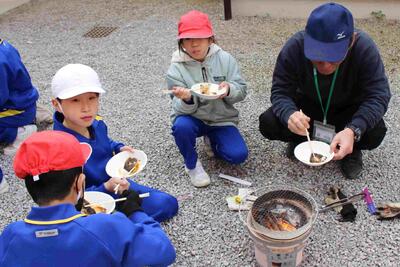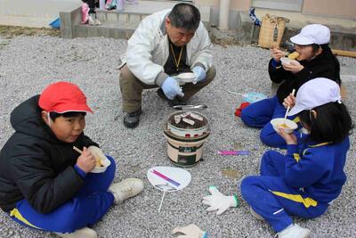 先日、3年生が社会科の「昔のくらし」を学ぶ一環として、七輪体験を行いました。当日は多くのボランティアの方にお越しいただき、少人数のグループに分かれて体験しました。まずはマッチで火をつけることに大苦戦・・最近の生活の中ではマッチを擦る機会はあまりないですからネ(^_^;)その後、ついた火を大きくするための様々な工夫や知恵を教えていただきました。そしていよいよお待ちかねの「実食タイム」。お餅やスルメを実際に焼いてみんなで楽しく試食しました。苦労した火で焼いたお餅は最高に美味しかったようです(^_^)