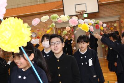 6年生からのサプライズもありました。そして楽しい時間も過ぎていき、いよいよ退場。