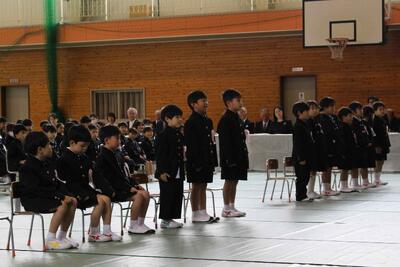 4月10日(金)に令和8年度入学式を行いました。今年度は13名のかわいい新1年生が入学しました。あいにくの雨ではありましたが、新入生はみんな元気に学校へ来てくれました。在校生もお兄さん、お姉さんとして頑張って式に臨んでいる姿がとても立派でした。入学式の様子を紹介します。