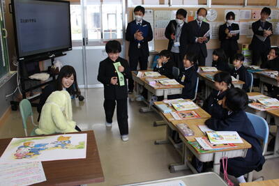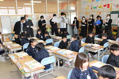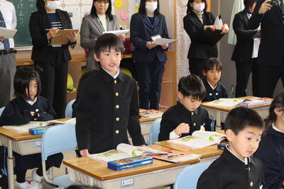 1月27日(火)に参観日がありました。多くの学年は国語と算数でしたが、5年生は1年間を通して総合的な学習で取り組んできた「米作り」の発表会を行いました。この発表会では米作りでお世話になったボランティアの皆さんも招待して、学んだことを発表したり、クイズを出したりして楽しく授業を行うことができました。また、お餅の試食も準備し、お世話になったボランティの皆さんや保護者の方々に振る舞うことができました。終始、楽しい雰囲気の中で発表会を実施することができました。他学年の授業の様子と合わせて紹介します。